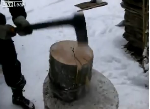 This guy makes it look so easy. A simple strap and a few well placed strikes with the maul.